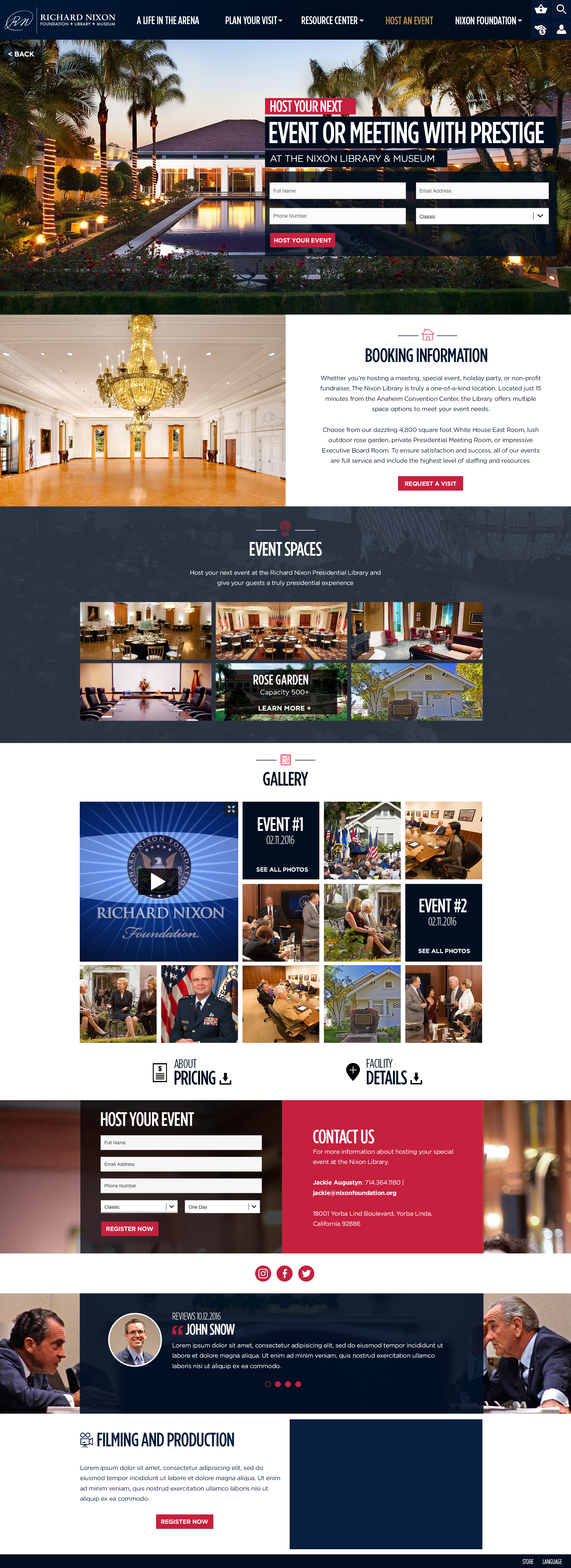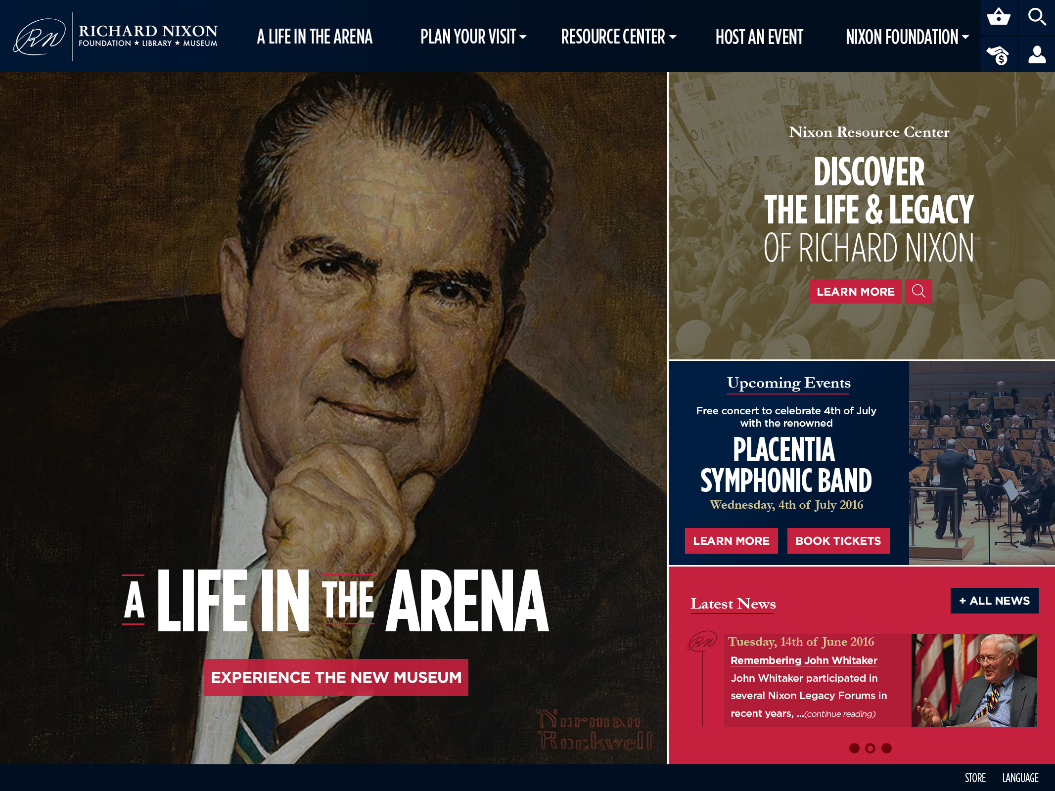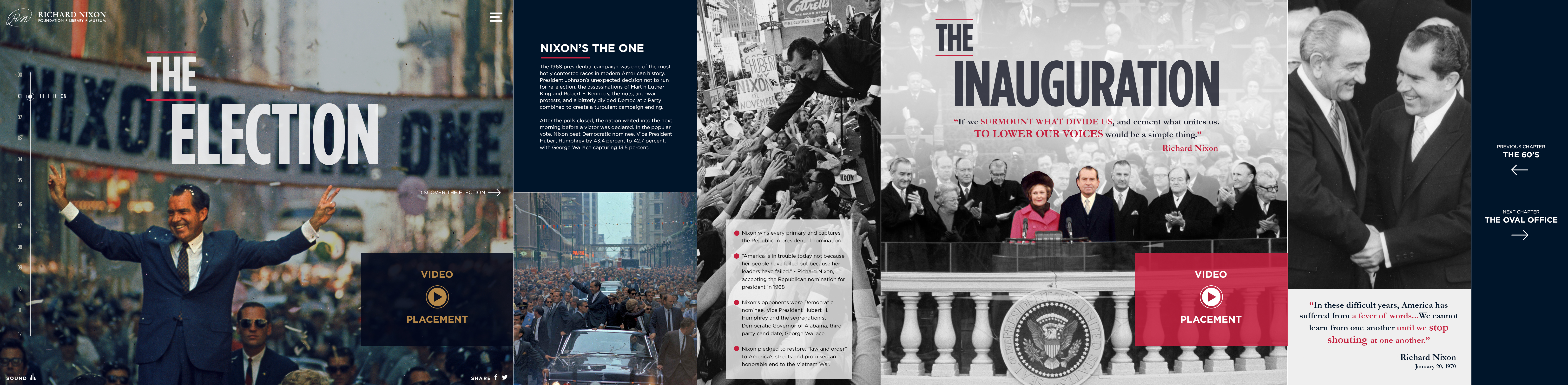 The Richard Nixon Foundation was looking to develop a new, interactive website as part of their multi-million dollar renovation to the Richard Nixon Presidential Library & Museum. The goal: create an inclusive online experience that would connect with a new generation of users who have a finite understanding of President Nixon and his legacy, while remaining cognizant of older generations that are familiar with his achievements. The interactive, visually stunning online destination provided users with an in-depth look into Richard Nixon's life and legacy.
